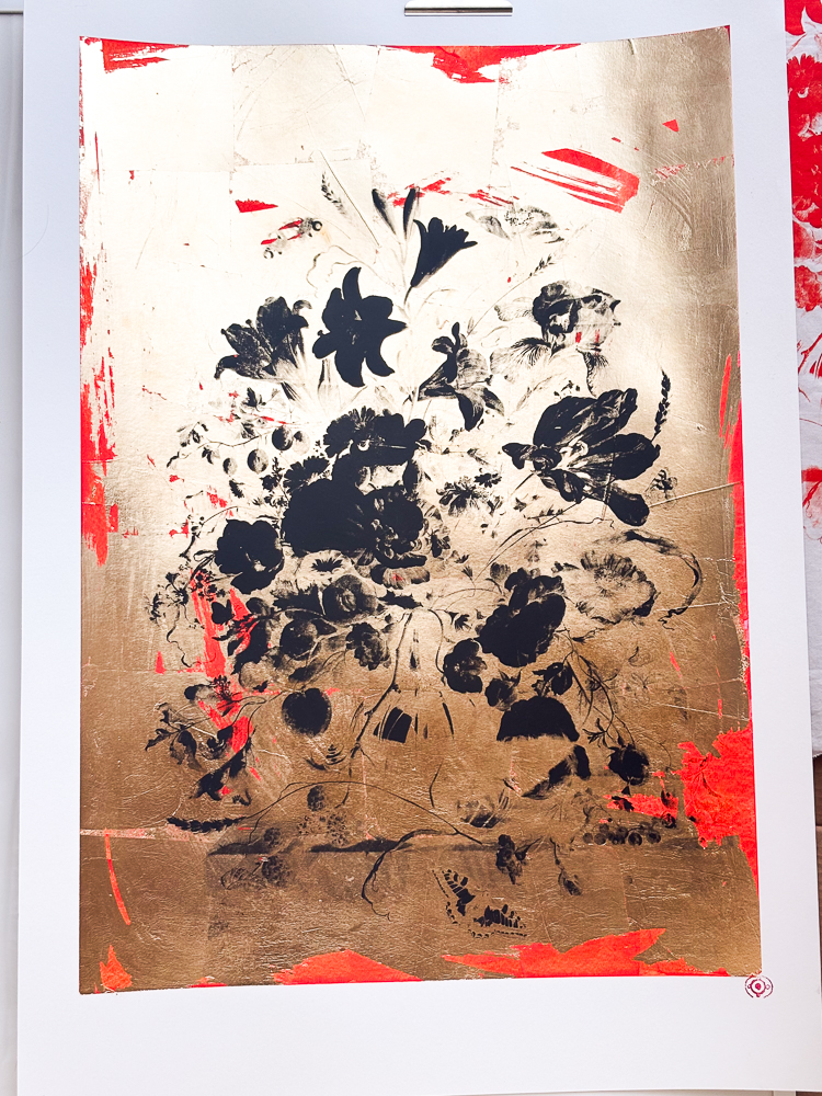Categories:Abstract, gold, Gold leaf, handfinished, mix media, painting, pastel, pigment, Screen Prints