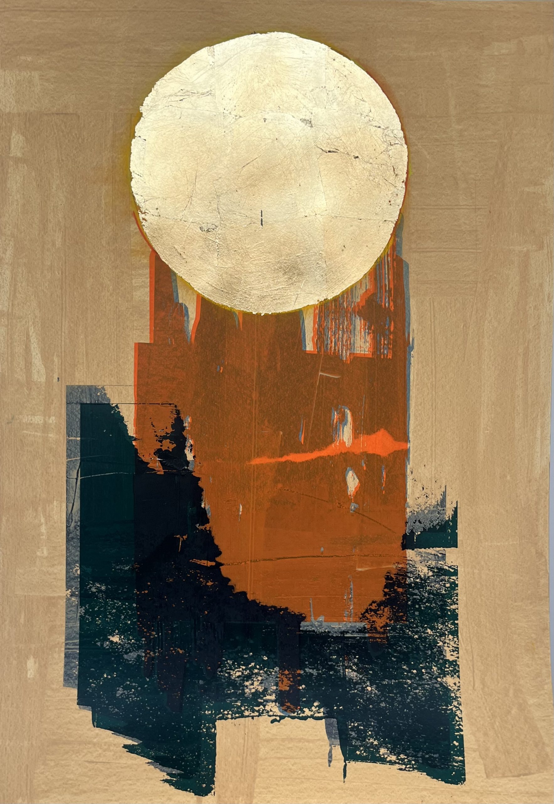 Mixed media artwork. Multilayered screen print with gold hand finish